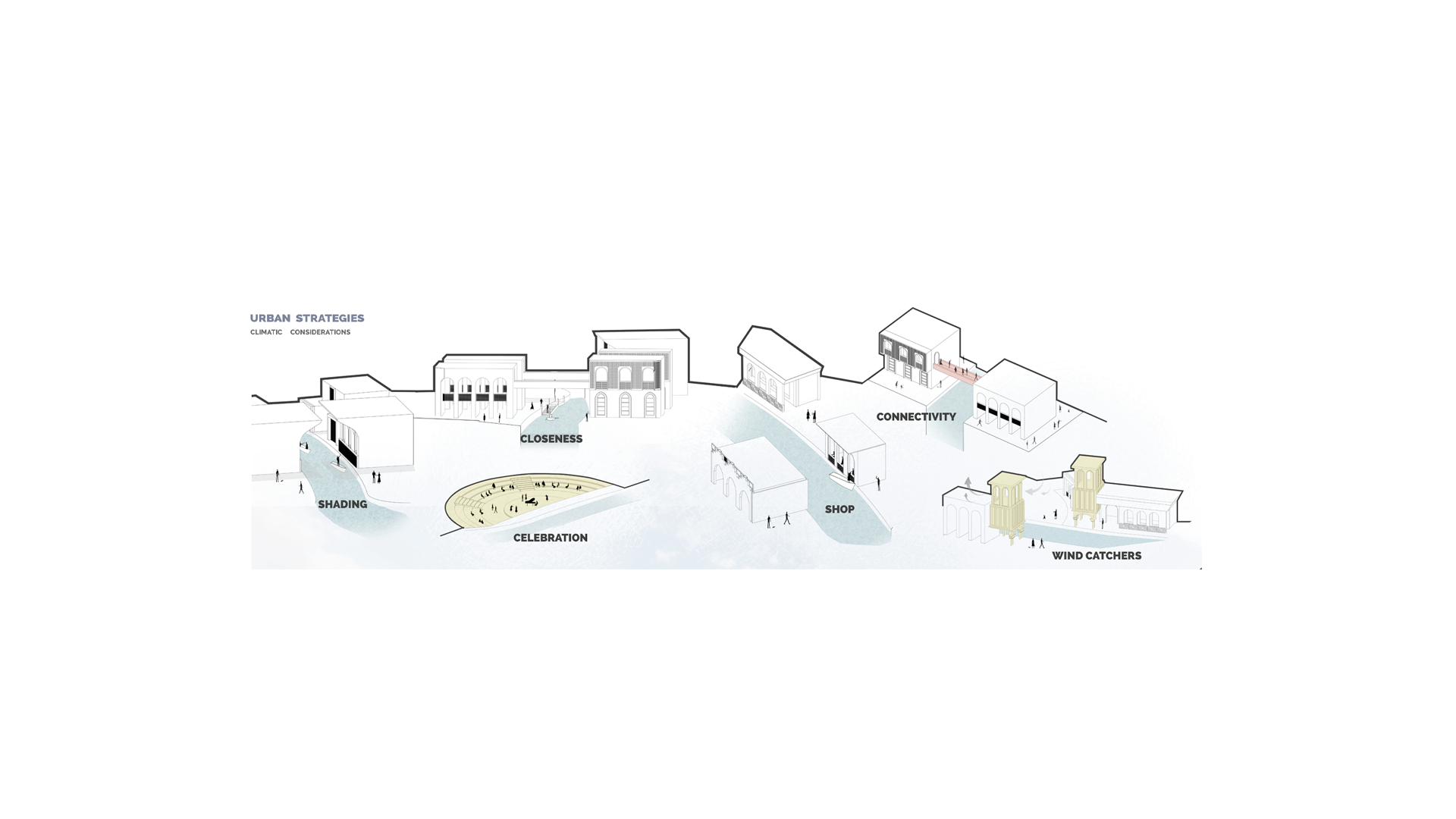 The revival of Dakeer Island in Al-Basra draws inspiration from its legacy as a thriving trading hub and seeks to restore its former glory as the Arab Venice. At the heart of the proposal is the reintroduction of water canals recalling Venice’s iconic waterways to provide both historical resonance and practical utility for movement and access.