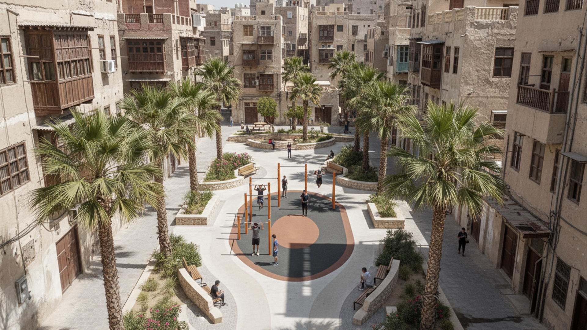 · Pathways connecting surrounding zuqaq and reinforcing pedestrian flow.