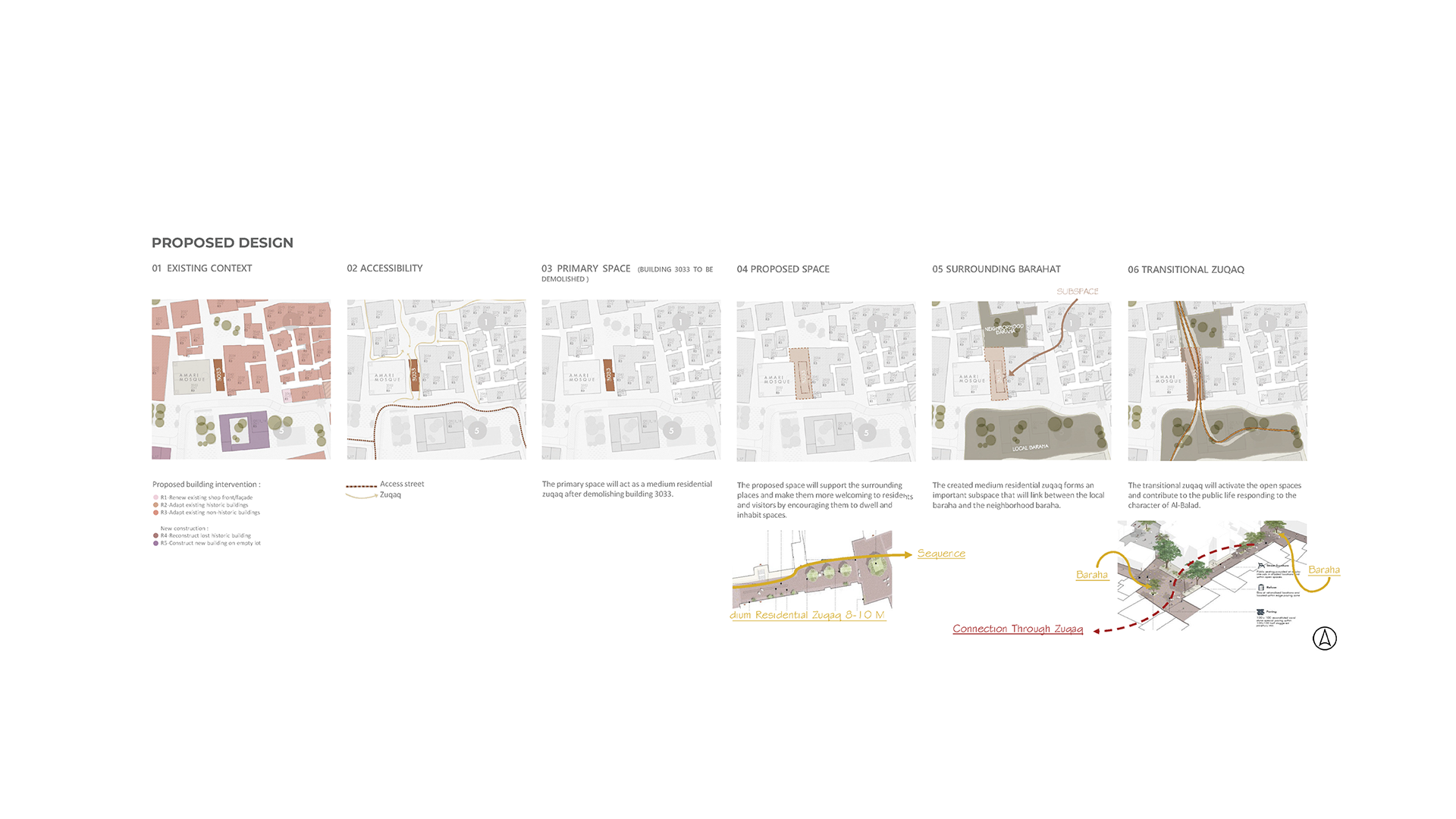 This adaptive urban design demonstrates how small-scale interventions can enhance connectivity, improve livability, and regenerate the historic urban fabric while staying rooted in local typologies of the baraha.
